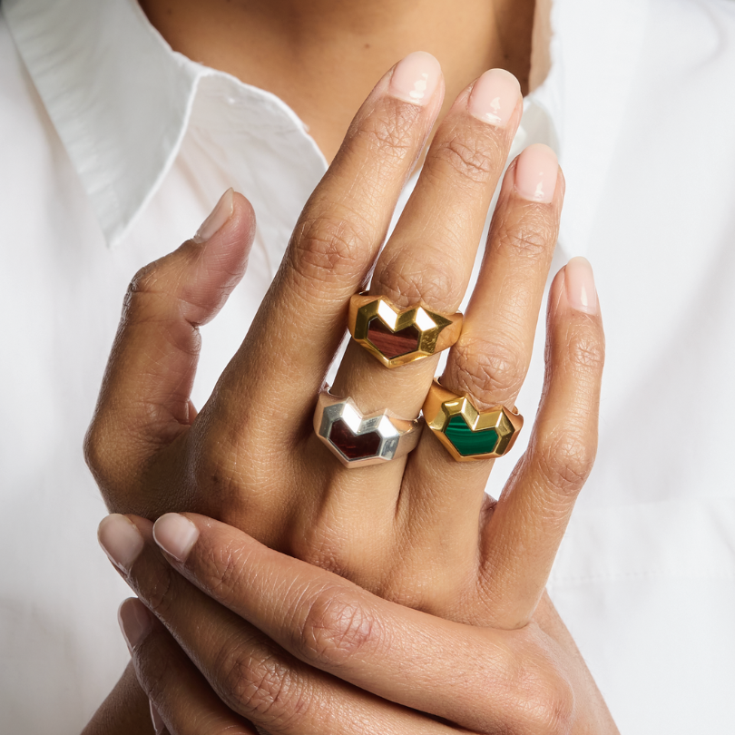 We draw inspiration from the world around us, translating it into unique timeless pieces that outlast fleeting trends. From our Daryl Ring, inspired by the concept of 'hard love' and the sharp, heart-shaped edges found on antique jewellery boxes which capture the complexities of love, to our Elektra crossbody, which draws from the graceful shapes of women in Renaissance art.