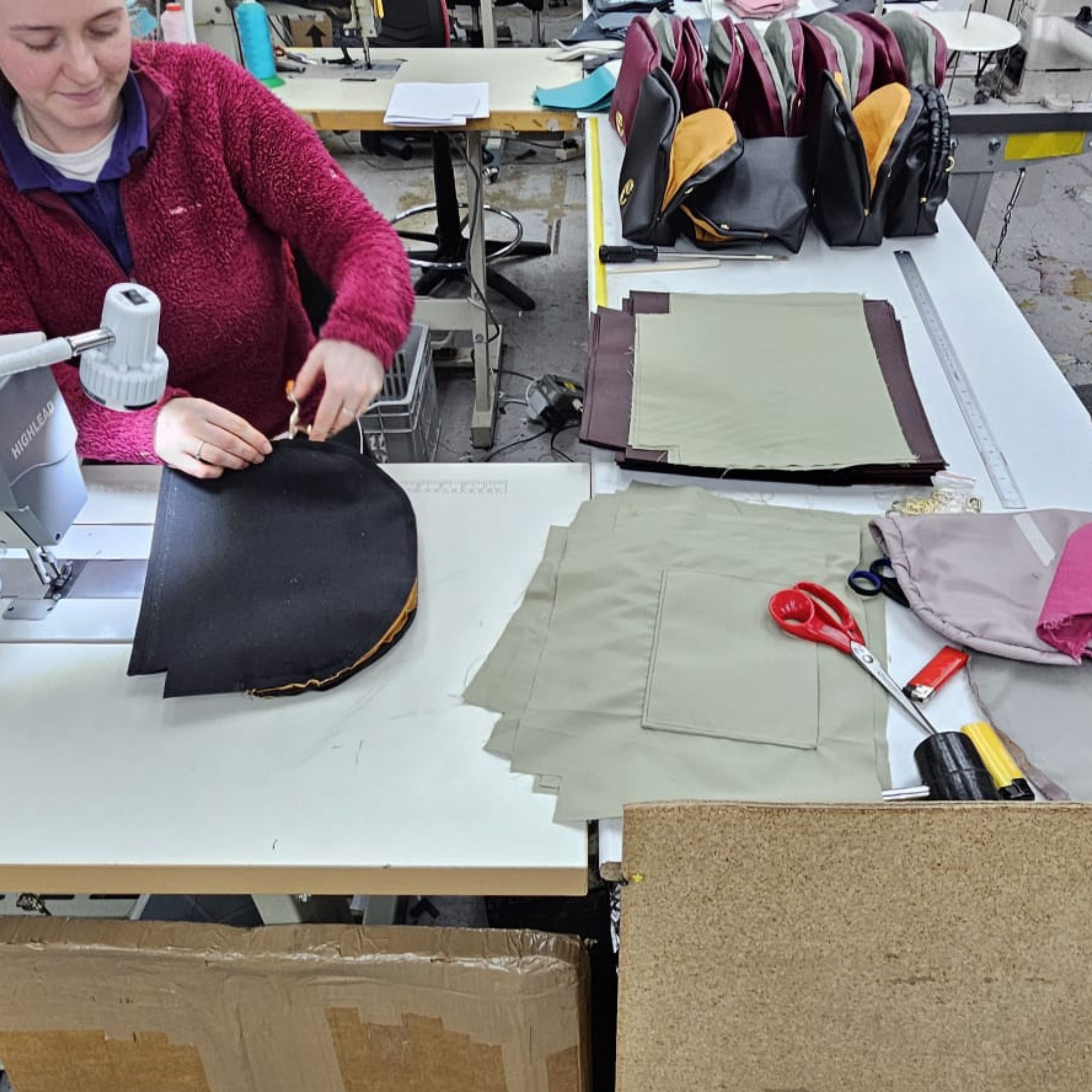 Once the leather alternatives are ready in three distinct colourways, they’re sent to Leicestershire in the UK. There, each piece is carefully crafted into our new collection of handbags and belts, made with precision, purpose, and attention to every detail. The result is a collection that’s both striking and responsible, reflecting our commitment to sustainability, quality, and forward-thinking design.